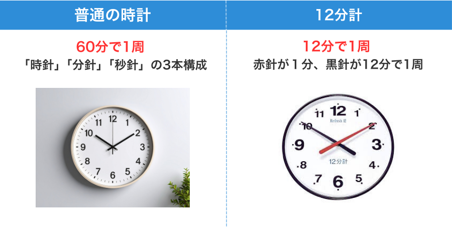 12分計とは、通常の時計とは異なり“12分を1サイクル”として計測する時計のことです。